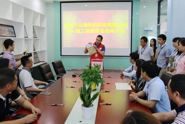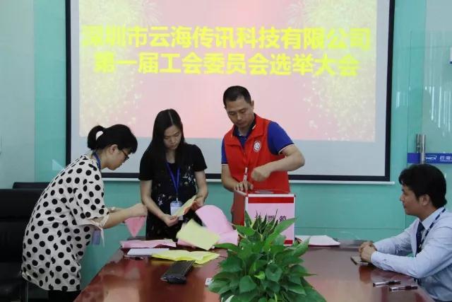 龙华区人大代表、宝能科技园工联会主席、副总经理黄金文;龙华街道清湖社区党委委员、工联会副主席刘华东和公司职工代表等人出席了此次会议。会议由刘华东同志持。会议通过无记名投票的方式产生了第一届工会委员、经费审查委员会委员及女职工委员会委员等班子成员。经各委员通过投票结果,朱鉴中当选为云海传讯第一届工会主席;孙美、梁辉当选为工会委员;易梅宏当选为经费审查委员会主任,张玉婷、底复娜当选为经费审查委员会委员;孙美当选为女职工委员会主任;张晓芳、方瑶当选为女职工委员会委员。
